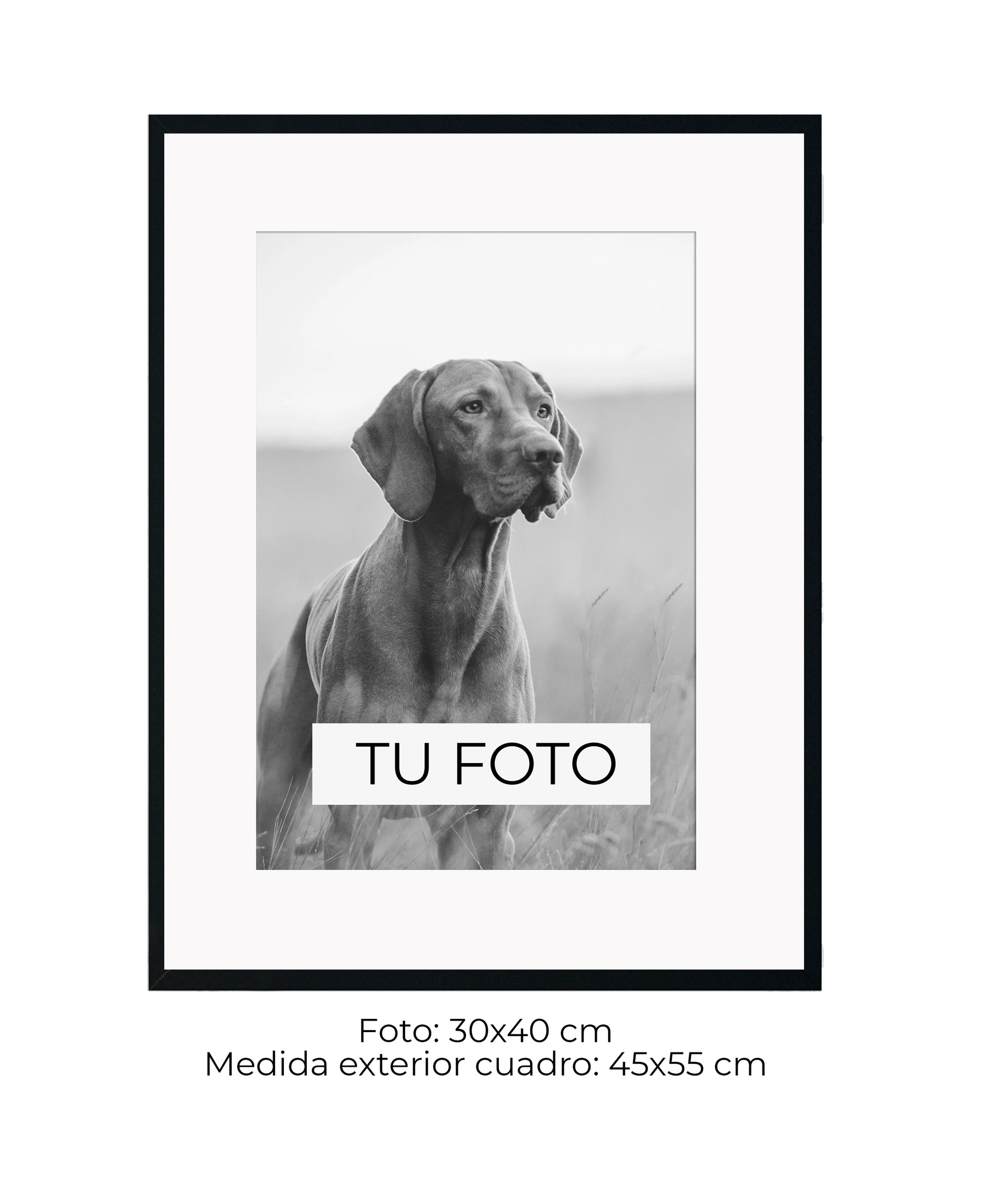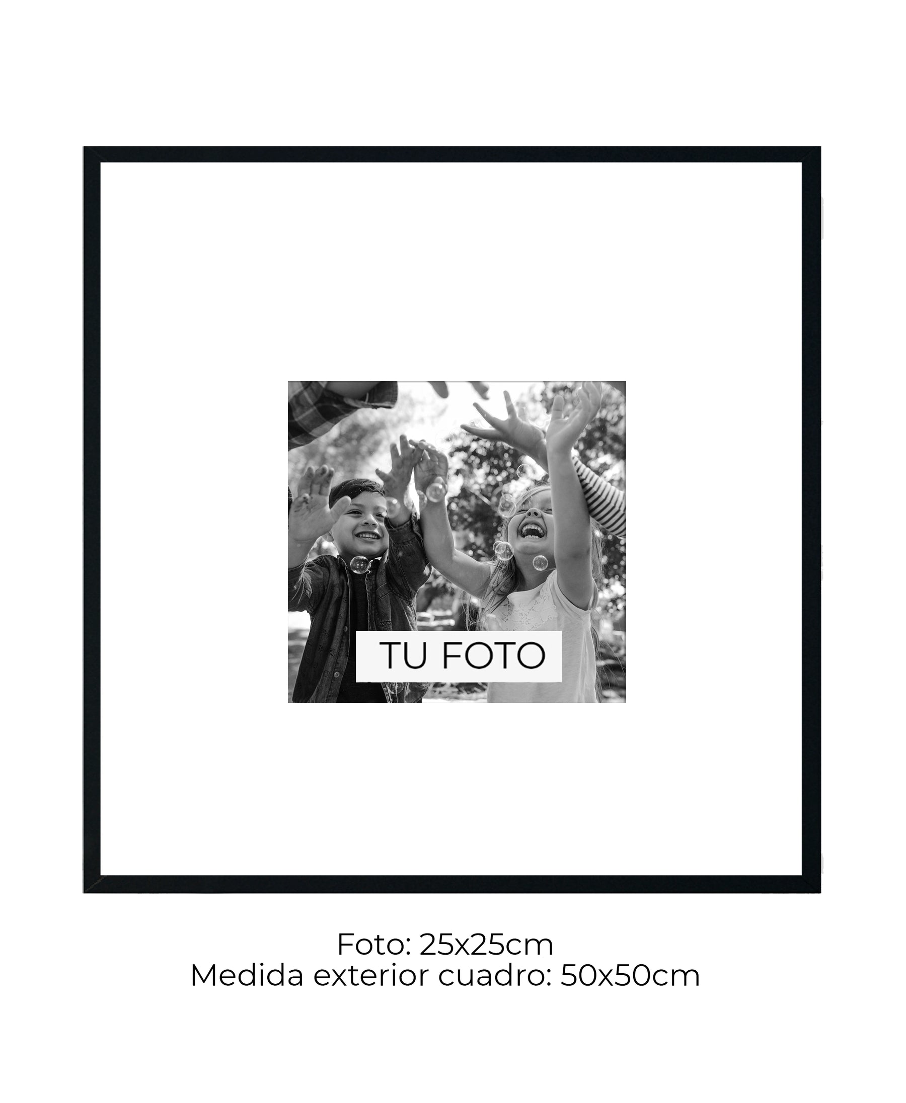 2 - Elige si lo quieres con o sin passepartout, en el caso que quieras passepartout, elige el color y la medida. En la imagen se indicará la medida final de tu cuadro.