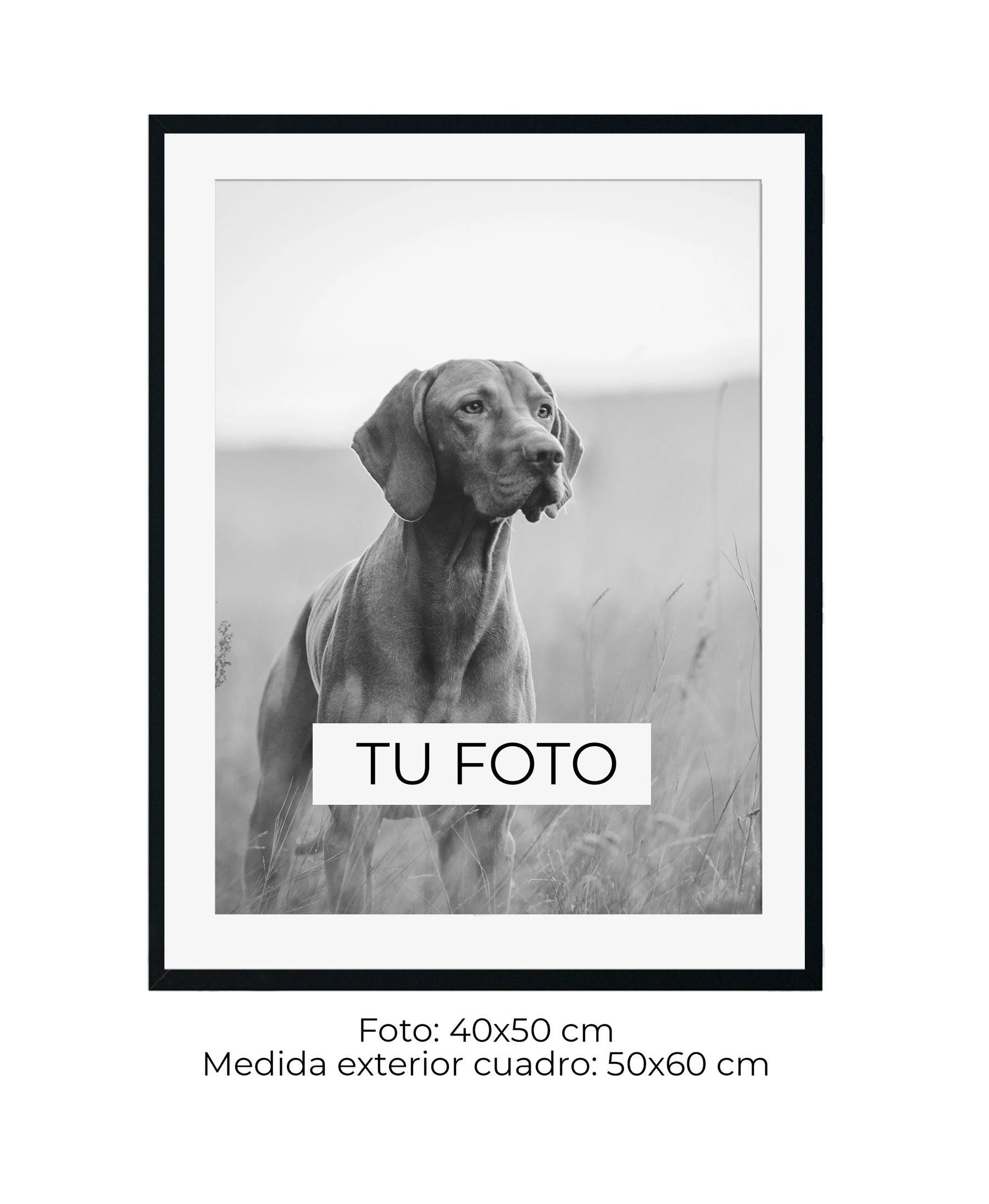 2 - Elige si lo quieres con o sin passepartout, en el caso que quieras passepartout, elige el color y la medida. En la imagen se indicará la medida final de tu cuadro.