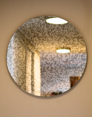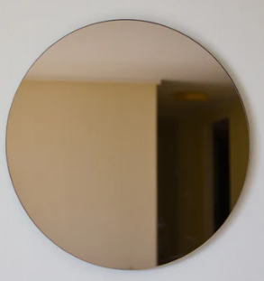 Espejo Circular sin marco de 4 o 5 mm de espesor. Estos espejos cuentan con bastidor en la parte trasera que permite dar el efecto que flotan sobre la pared y está disponible en varias medidas y colores.