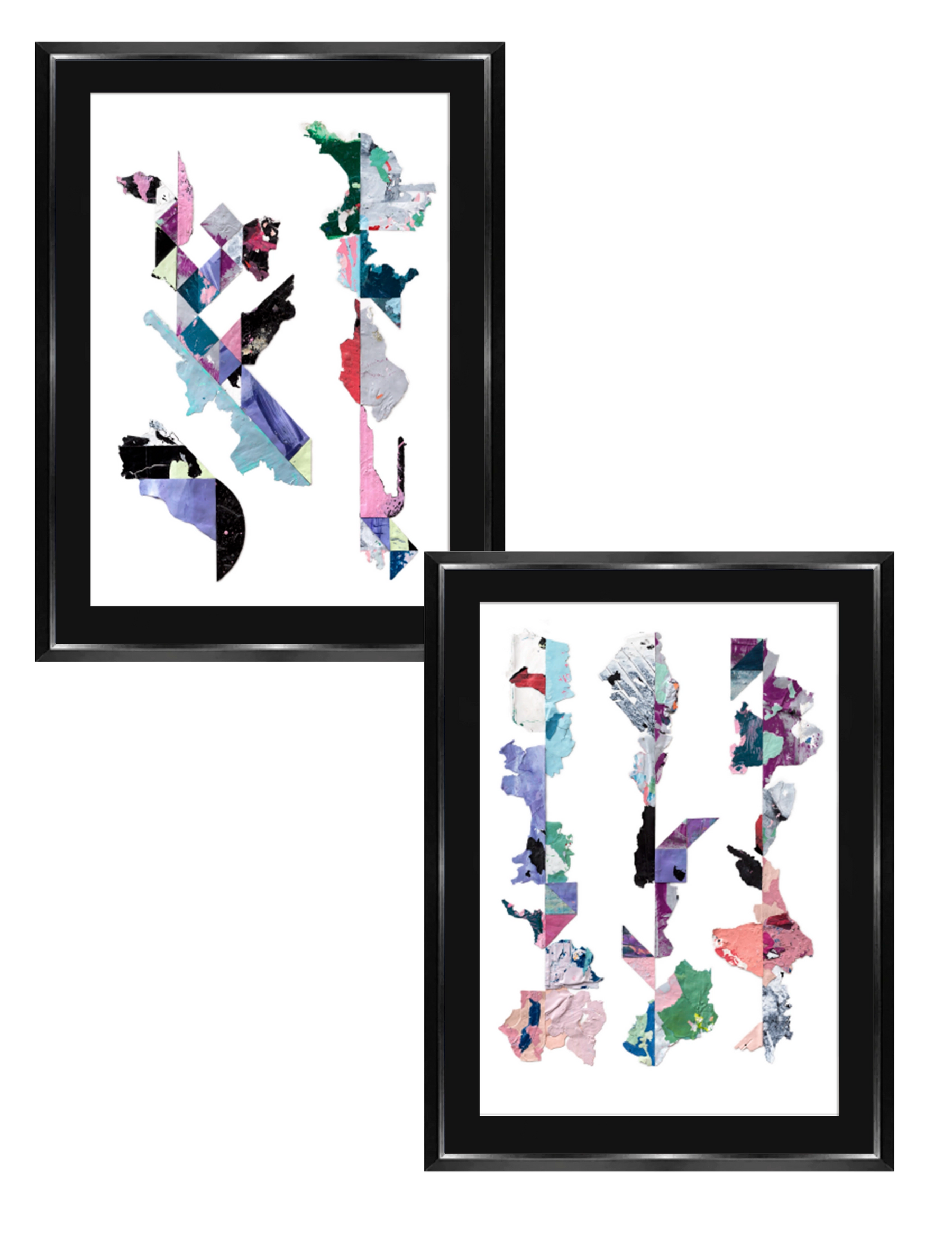 Dupla de cuadros digitales sobre originales de Constanza Larenas en papel texturado libre de ácidos con nuevo marco Pirámide negra de 4 cm de profundidad y passepartout negro.