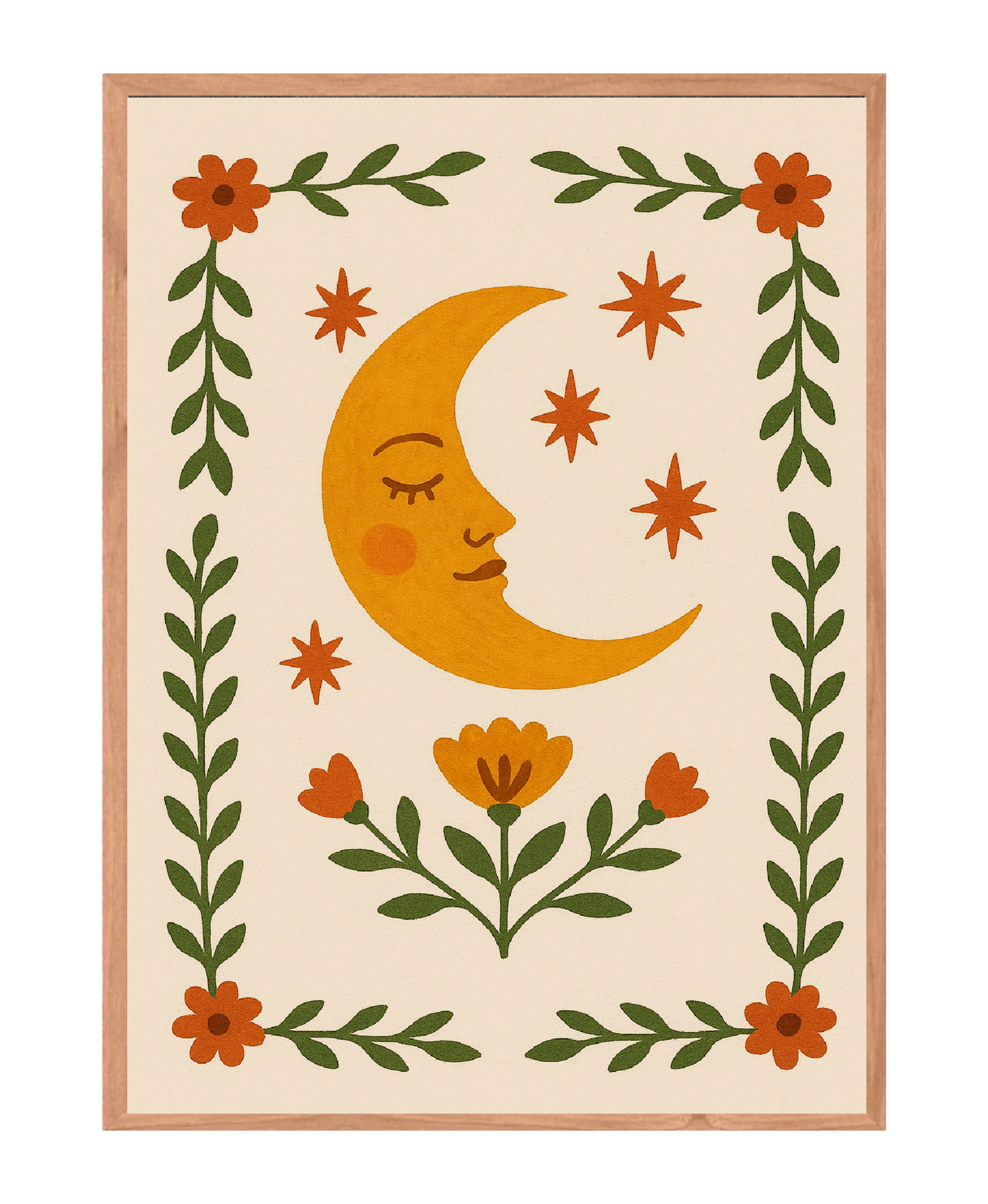 Cuadro Ilustración en papel libre de ácido con marco liso color cedro de 2 cm.  Este cuadro puede hacerse en medidas especiales, consulta a: hola@ambardeco.cl